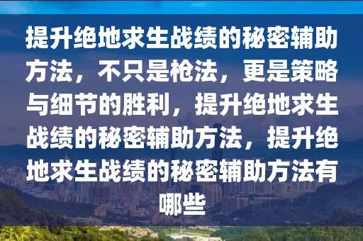 在《绝地求生》(PUBG)的激烈战场上,许多玩家将战绩不佳归咎于枪法不准或运气不好,真正的顶尖玩家深知,可持续的胜利并非仅依赖反应速度或天赋,而是建立在系统性的辅助方法之上,这些“秘密”并非外挂或作弊工具,而是通过优化硬件设置、调整游戏策略、强化心理素质和利用学习资源来提升综合实力,本文将深入探讨这些常被忽视却极其有效的方法,帮助你在战场上脱颖而出。